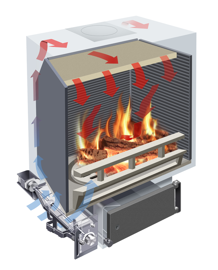 Nestor Martin´s patented Woodbox® combustion technology uses a combination of natural chimney draft and preheated air, driven slowly and evenly towards the flame. This way, you get stunning flame effects, ranging from huge flames to afterburning fire of all colors dancing over the logs.